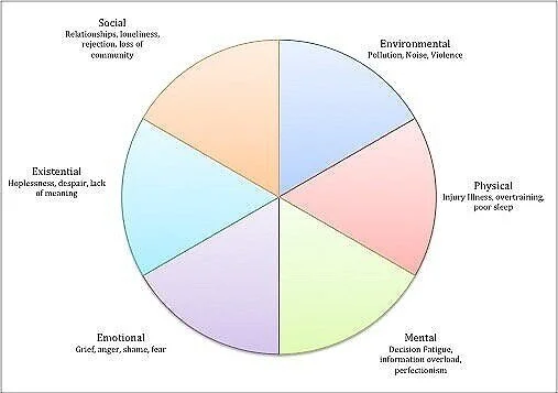 Color in each wedge with how strongly each particular stressor is affecting you right now. The more you color in, the more stress you have in that domain.